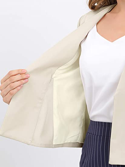 Women's Crop Collarless Blazers Suit Zip Decor Work Office Jackets Blazer